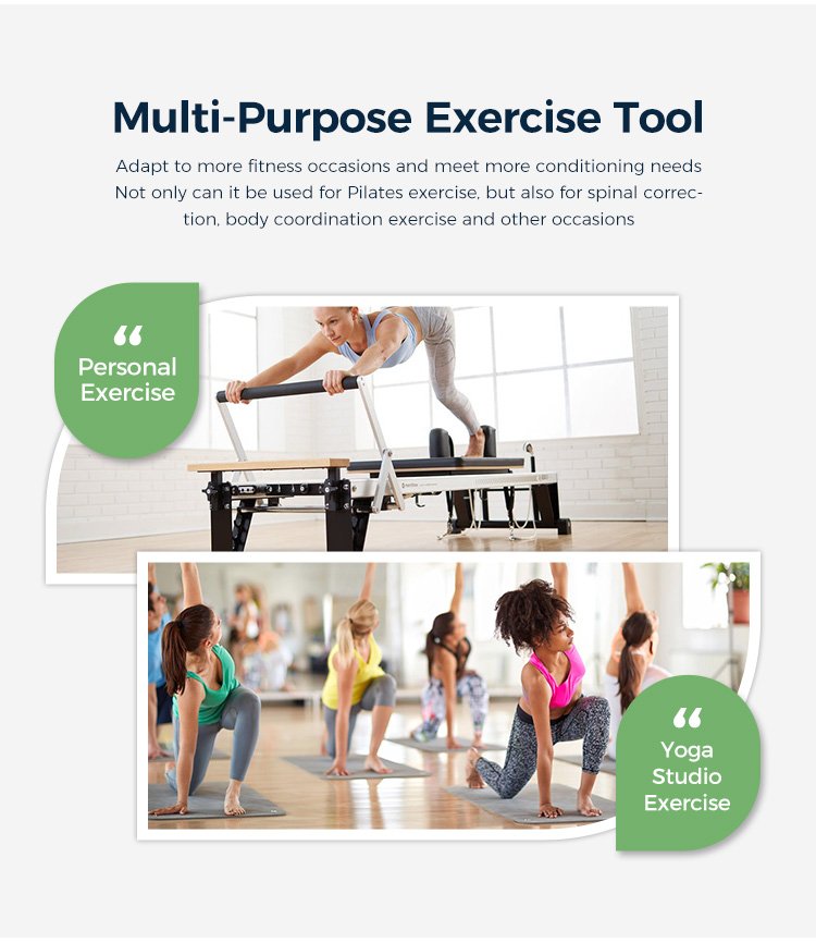 • Stable structure: The Pilates reformer is made of strong and durable materials with a stable structure and can withstand various training intensity and weight. This ensures long-term use and safety of the product.
